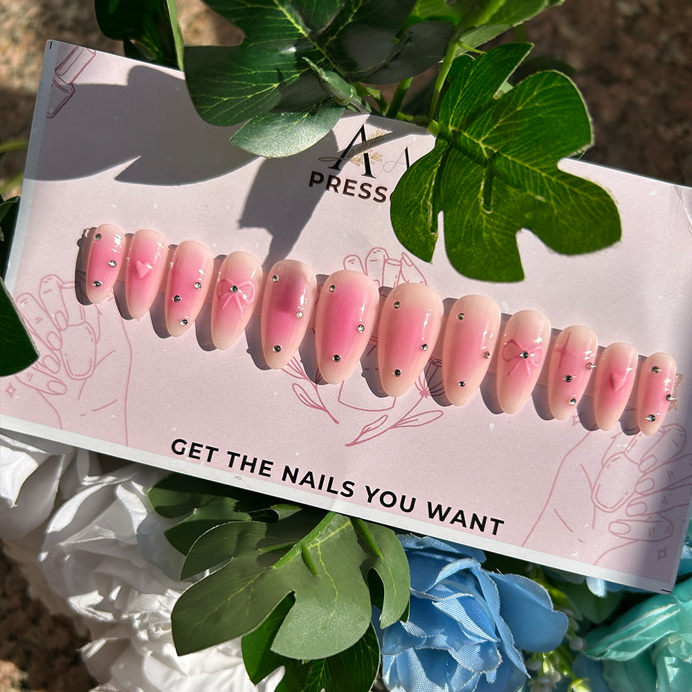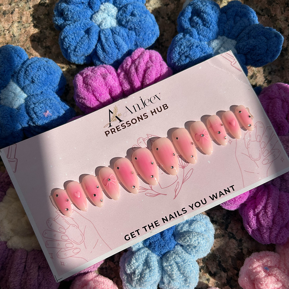 Let your nails whisper charm and grace with Ethereal Pink Bow — a fairy-tale touch, handcrafted just for you.