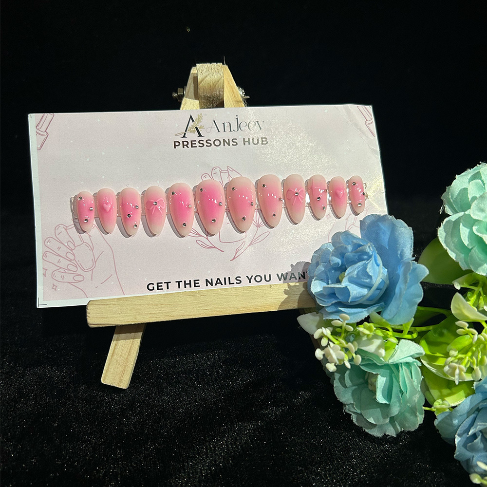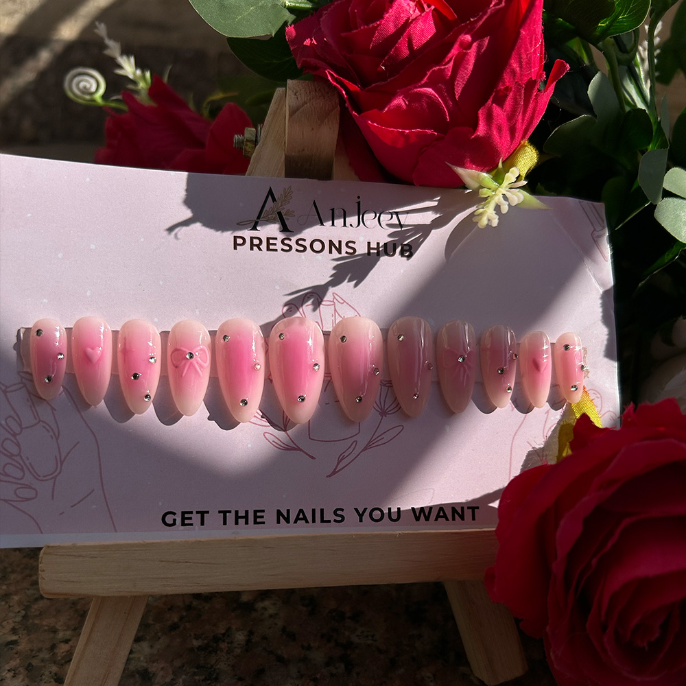 Anjeev Premium Quality – Etheral Pink Bow Nails